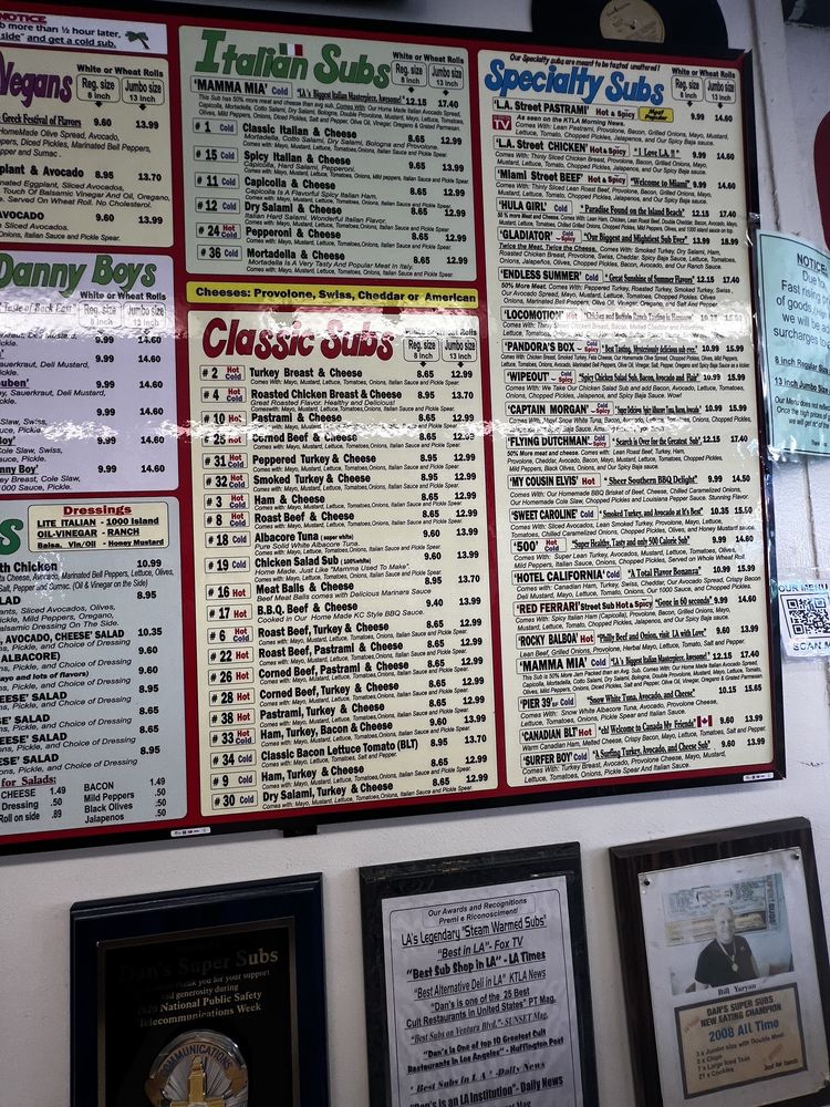 Dan’s Super Subs, located in Woodland Hills, CA, is a must-try for sub lovers. With a wide range of options, including award-winning specialty subs like the LA Street Pastrami and the Classic Italian Cold Cuts, this place offers a delicious adventure for your taste buds. The LA Street Pastrami, served hot and spicy, is a sensation with its lean pastrami, cheese, bacon, grilled onions, jalapenos, and homemade Baja sauce. If you prefer cold cuts, try the Italian subs with a variety of meats and cheeses. The menu also includes classic subs like Turkey Breast & Cheese and Pastrami & Cheese, all made with premium quality ingredients. With options for vegan diners and various payment methods accepted, Dan’s Super Subs is a welcoming spot for all. Don't miss out on their delicious offerings!