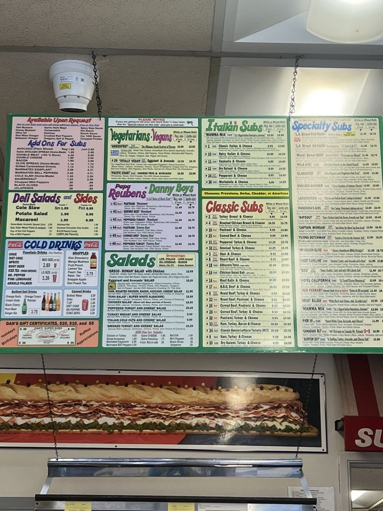 Dan’s Super Subs Menu